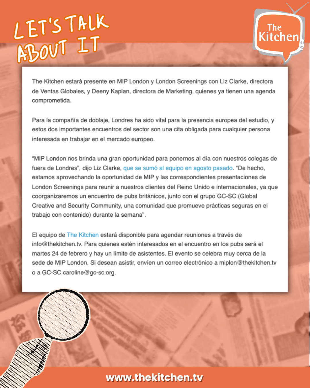 The Kitchen reforzará su presencia en Europa durante MIP London Jamie RodriguezJanuary 27, 2026 Facebook0 Twitter LinkedIn0 Reddit Tumblr Pinterest0 0 Likes
